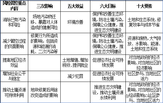表1 识别污染场地可持续风险管控重点内容(来源:作者及其团队)