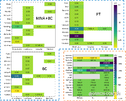 (1)人体健康影响共梳理出8种效应,包括全球变暖、离子辐射、平流层臭氧消耗、臭氧生成、颗粒物生成、人类非致癌毒性、人类致癌毒性、和水资源健康。