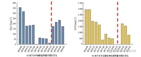 图12 地下水中硝酸盐(a)及溶解性有机碳(b)质量浓度变化