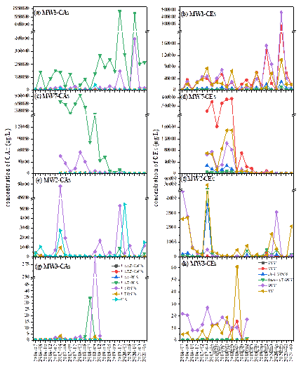 通过点位进行变量指数法的分析,识别出园区、扩散区以及污染的尾部区域,进行趋势分析。MW1周边可能存在污染源,持续释放;MW4-9点位中氯代烃发生自然衰减;结合地下水流向分析,MW7前期的污染增加可能来源于MW1、MW2和MW3,监测井中的低氯代烯烃(LCEs)和低氯代烷烃(LCAs)占主导地位,这可能是由于污染源MW1的扩散。同时,微生物群落的多样性和丰富度主要受低氯代脂肪烃,尤其是低氯代烯烃的影响。