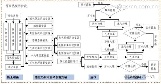 原位热脱附工艺的施工流程涉及施工准备阶段、原位热脱附主体设备安装阶段、运行阶段、污染物控制阶段,具体细节参考图3。